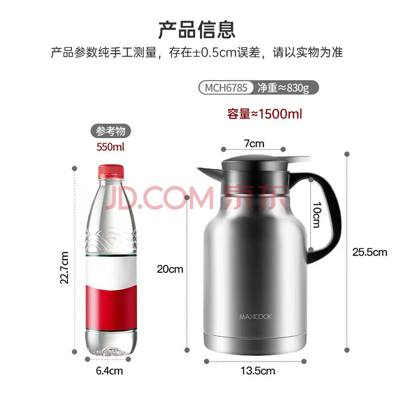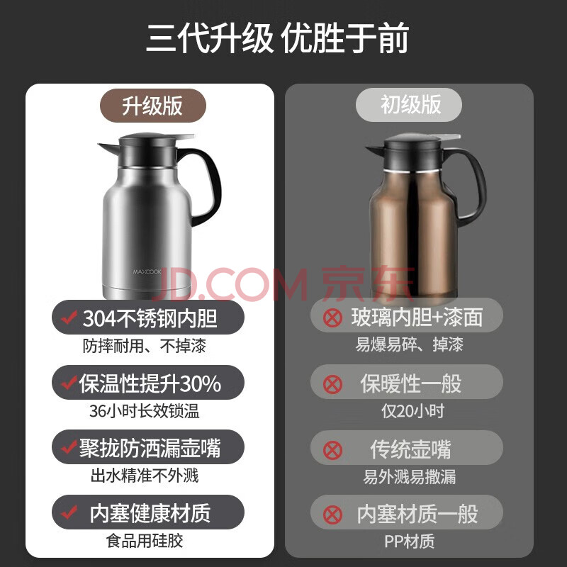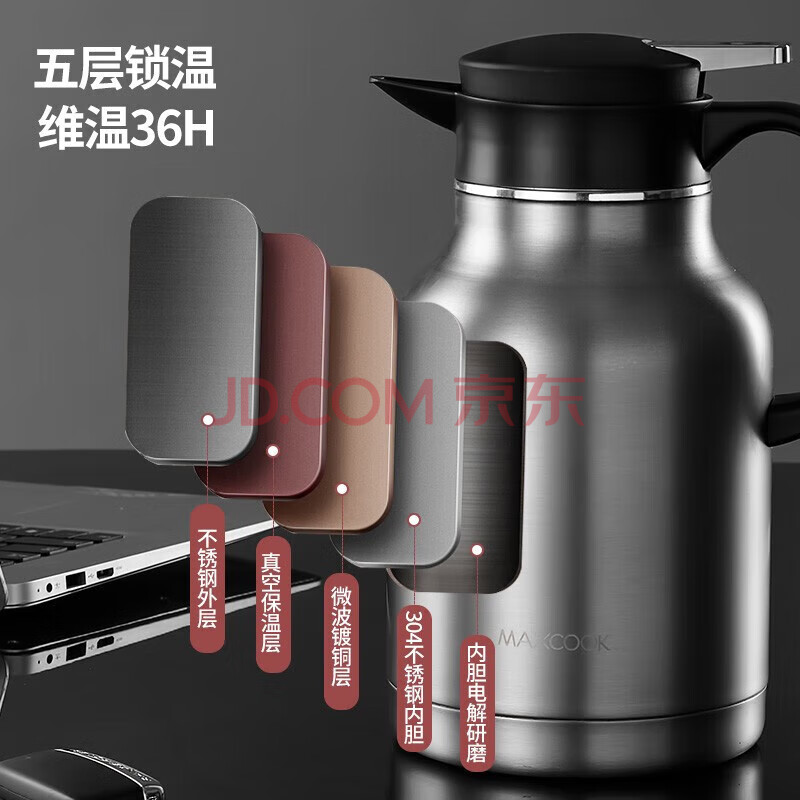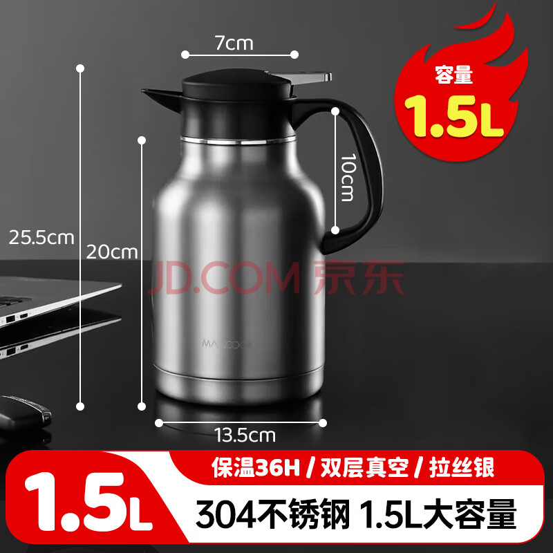 商品相册:美厨(maxcook)保温壶热开水瓶家用 304不锈钢内胆真空暖水壶办公室1.5L MCH6785第