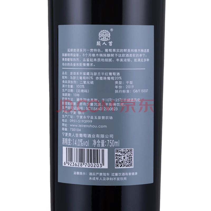 商品相册:类人首红酒 宁夏贺兰山东麓国产马瑟兰橡木桶干红葡萄酒750ml*6瓶整箱第