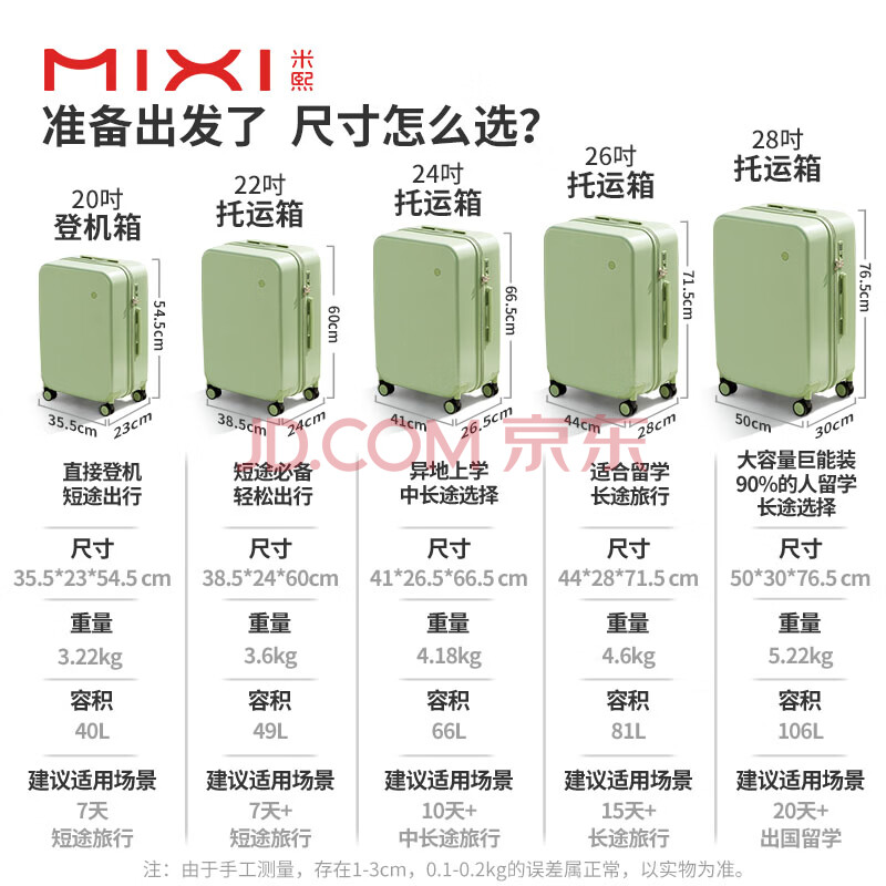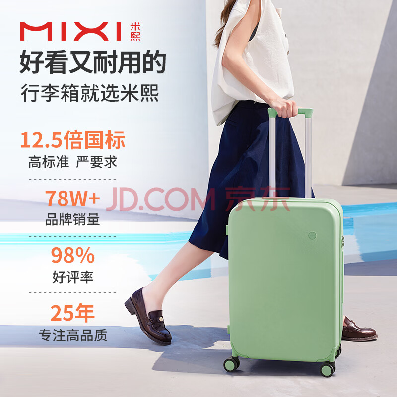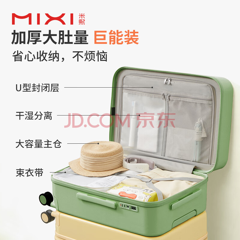 商品相册:米熙高颜值拉杆箱子行李箱大容量旅行箱女密码箱包男22英寸牛油果绿36第