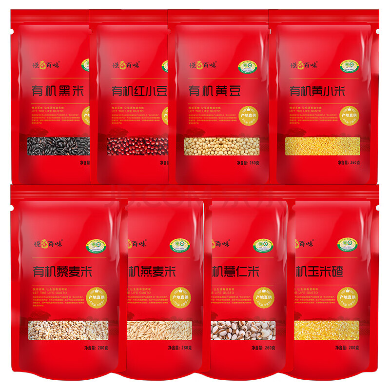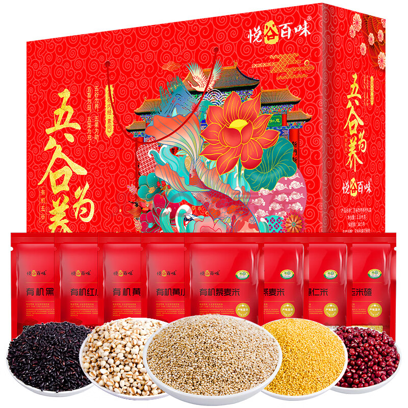 商品相册:悦谷百味 有机8种杂粮礼盒4.32斤(中秋礼盒 小米藜麦红豆薏仁黄豆黑米)第1张/共8