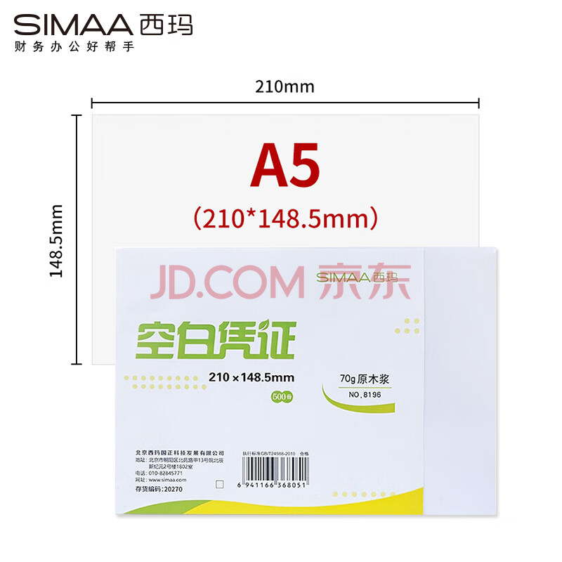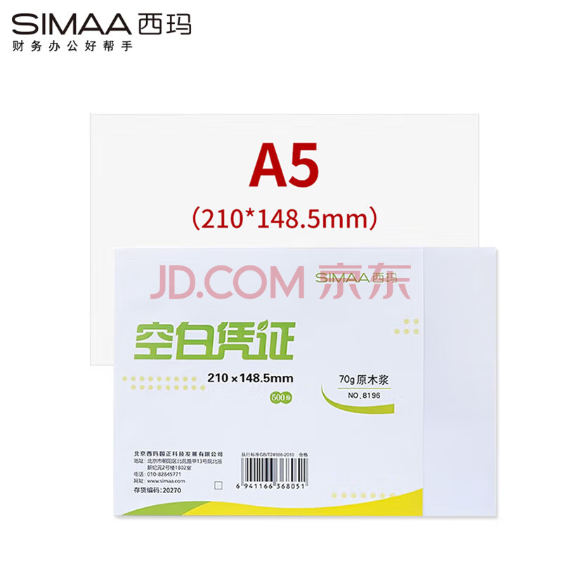 商品相册:西玛(SIMAA)A5打印纸70g通用空白凭证纸复印纸电子发票打印纸 500张/包 8196热门商品办公用品打印纸第