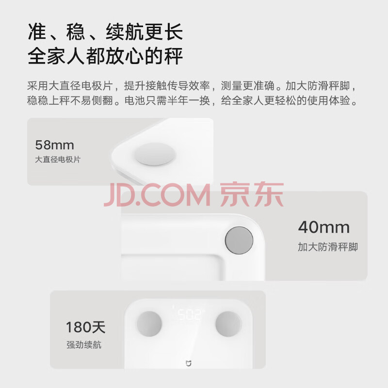 商品相册:米家小米智能体脂秤S400 白色 双接家用电子秤体重秤 高精准25项身体数据平衡测试 体重体脂管理第1张/共4