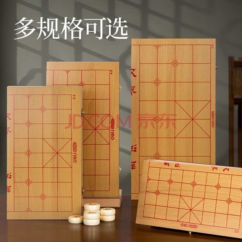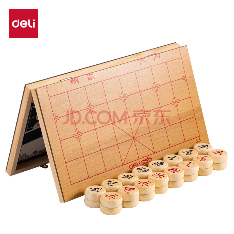 商品相册:得力(deli)折叠实木中国象棋升级款木连盘实木中国象棋桌游学生开学露营套装第1张/共7