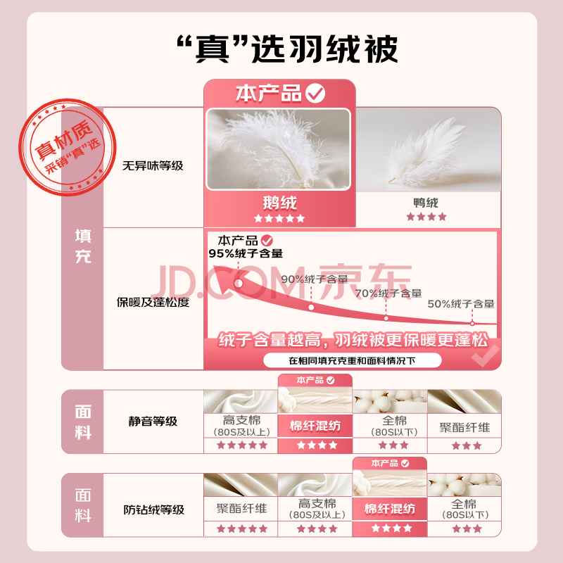 商品相册:SIDANDA羽绒被95白鹅绒可水洗A类面料鹅绒填充266g 夏被200*230cm第