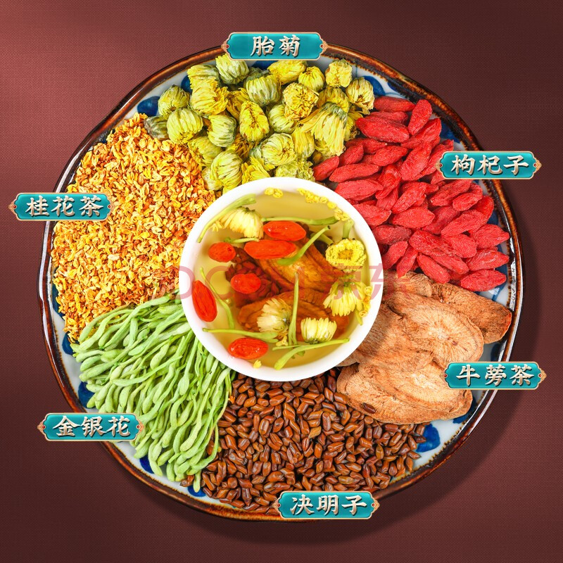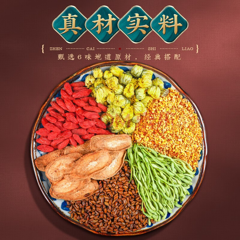 商品相册:福茗源 茶叶 枸杞菊花决明子茶叶6罐装735g 牛蒡根金银花桂花胎菊花草茶第