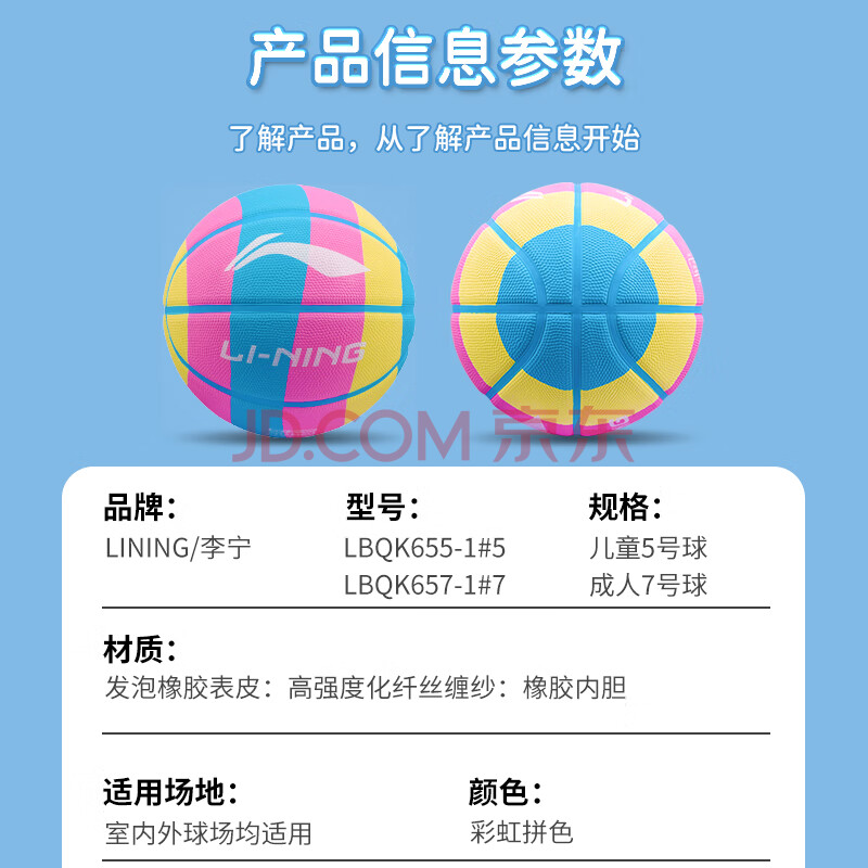 商品相册:李宁(LI-NING)篮球儿童5号青少年耐磨水泥地室外比赛小学生幼儿园篮球五号655-1第