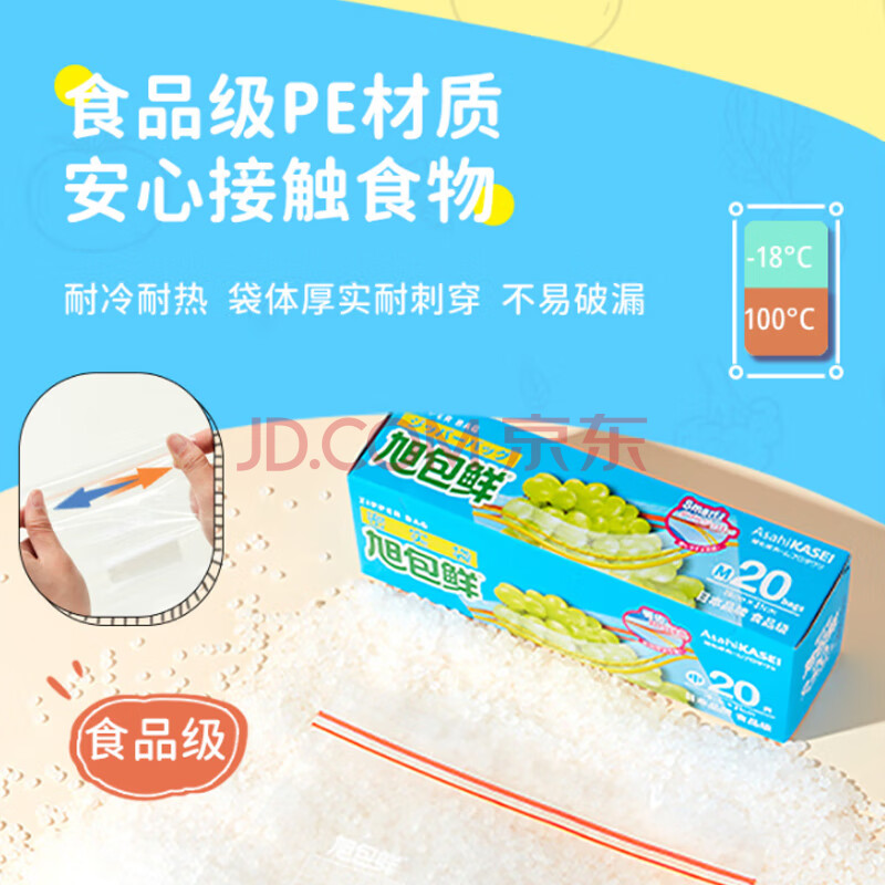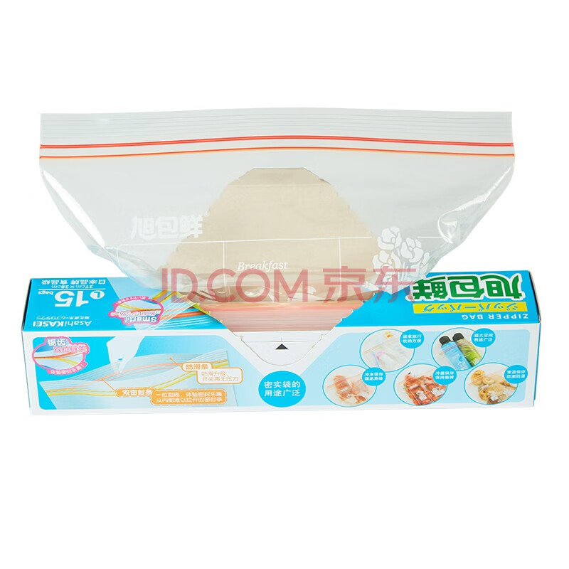 商品相册:旭包鲜日本品牌PE密封袋大号15只装 双拉链密实袋自封袋加厚收纳保鲜袋第
