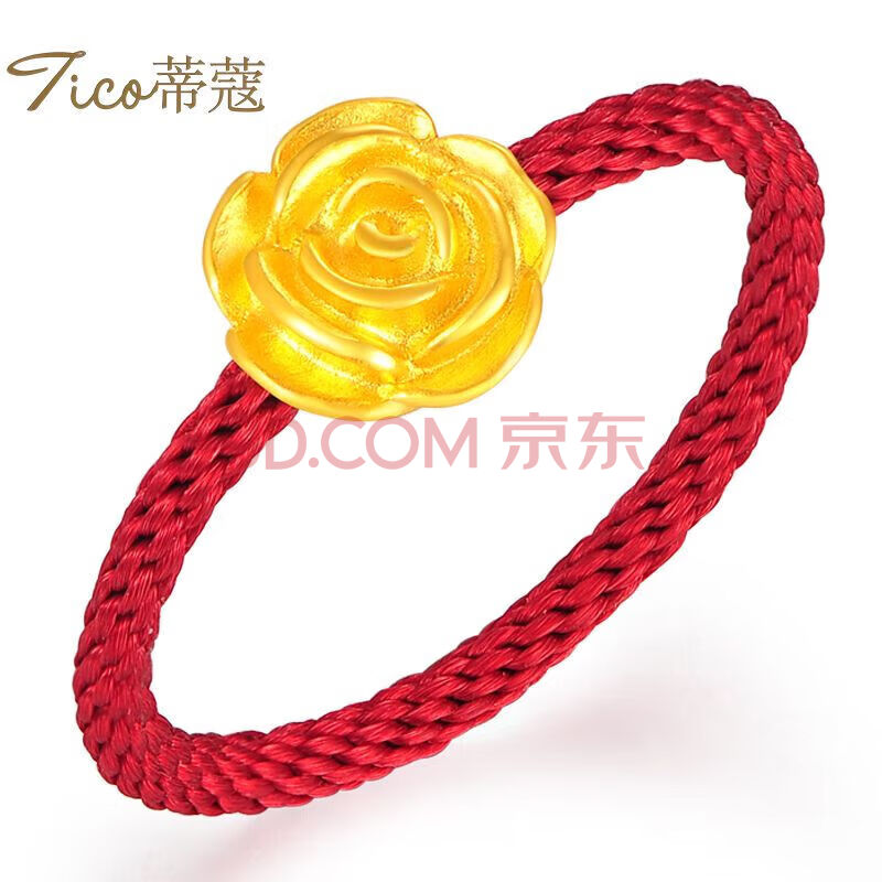 商品相册:蒂蔻(Tico)足金玫瑰花黄金戒指女3D硬金转运珠编织红绳指环送女友生日礼物第
