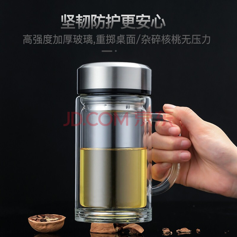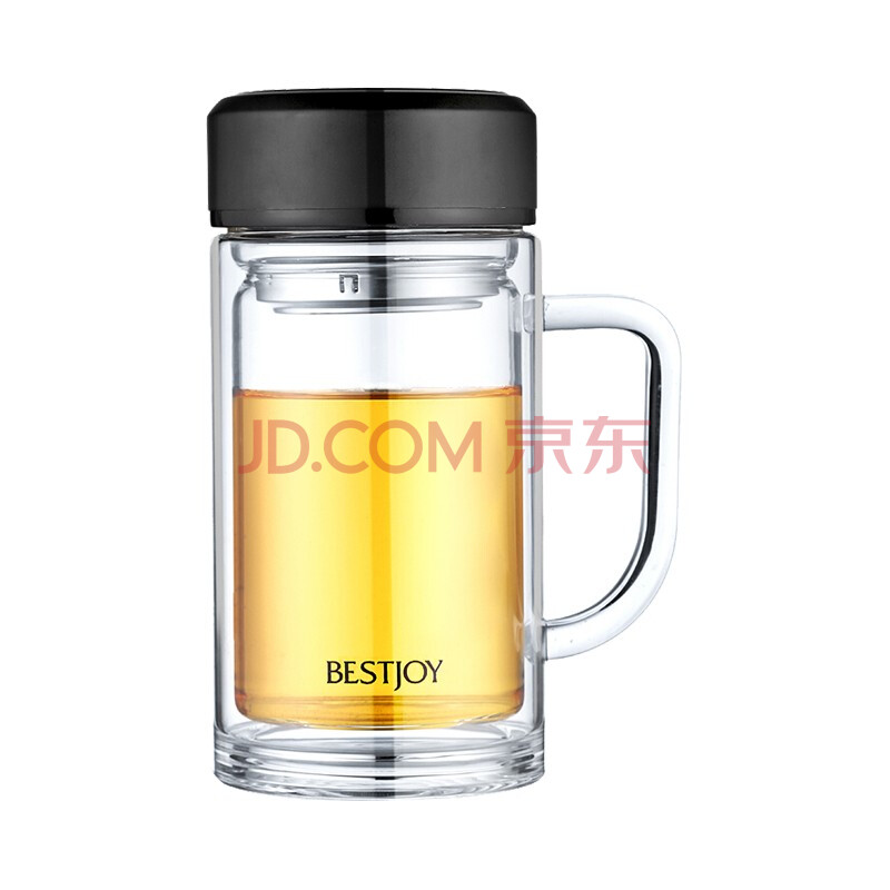 商品相册:富光拾喜双层玻璃杯男女办公水杯防烫带滤网便携大容量泡茶杯子350ml黑色第