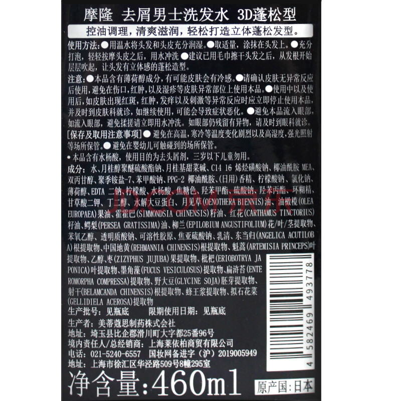 商品相册:摩隆(MARO)3D立体丰盈蓬松洗发水 控油去屑洗发露膏460ml第