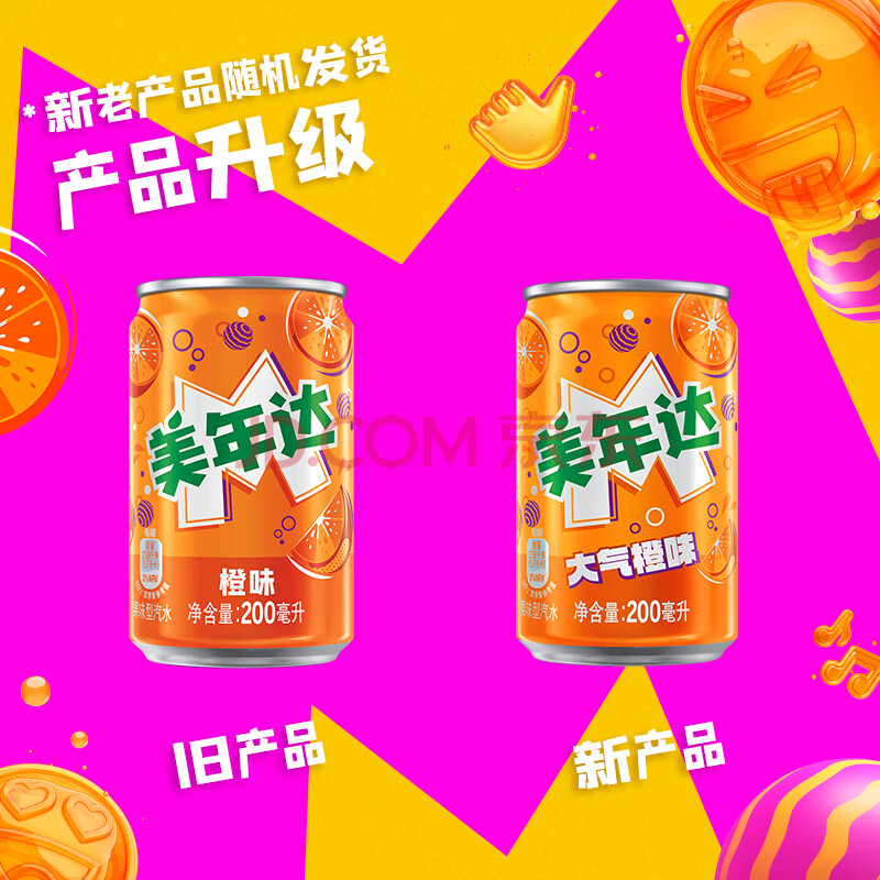商品相册:百事可乐美年达 Mirinda 大气橙味汽水碳酸饮料迷你罐200ml*20听 整箱装第