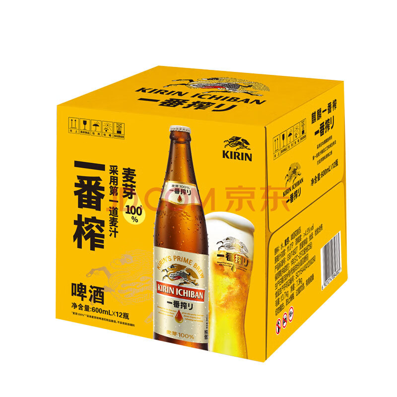 商品相册:麒麟(Kirin)一番榨 黄啤酒 600ml*12瓶 整箱装京东自营送礼第