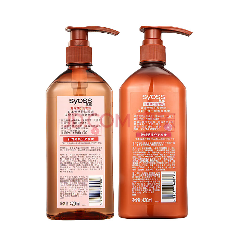 商品相册:丝蕴(syoss)洗发水山茶油滋养修护受损洗头膏护发素套组(洗420ml+润420ml)第