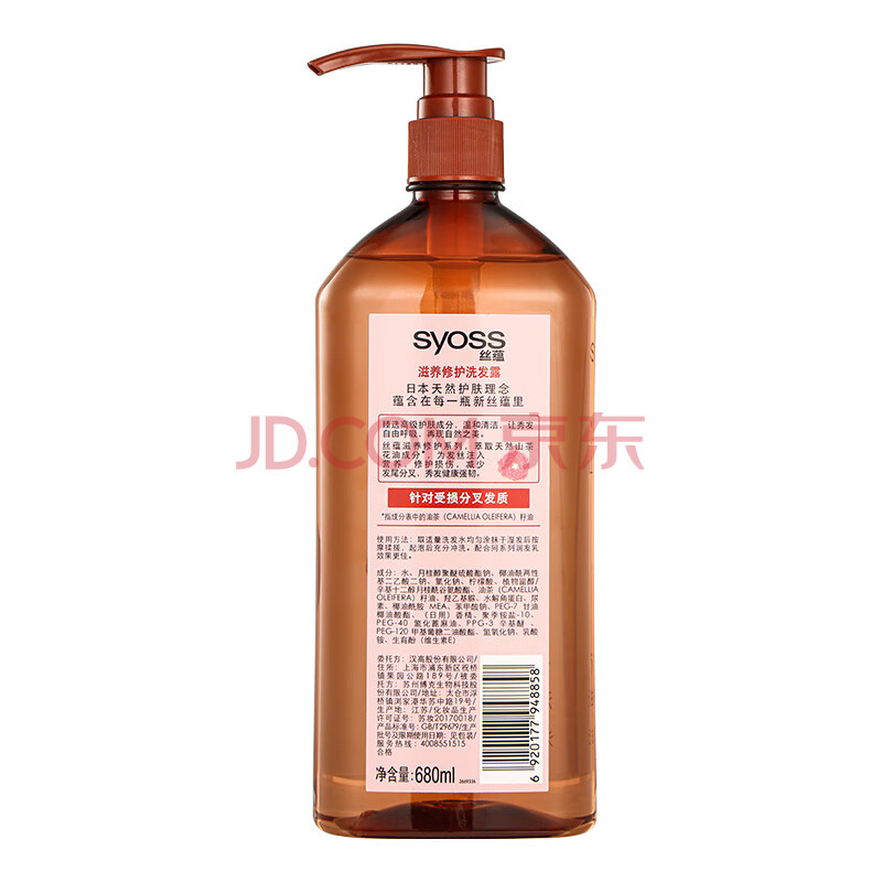 商品相册:丝蕴(syoss)洗发水山茶油滋养修护受损洗头膏抚平毛躁无硅油洗发露680ml第