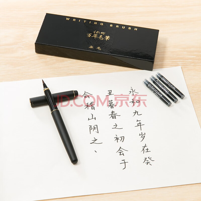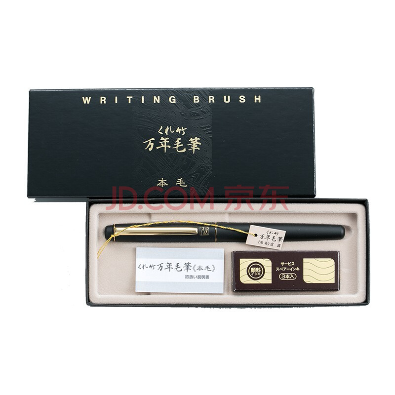 商品相册:吴竹(KURETAKE)进口 万年毛笔 科学毛笔 自带墨水 天然狼毫 DV140-40套装 皮调黑第