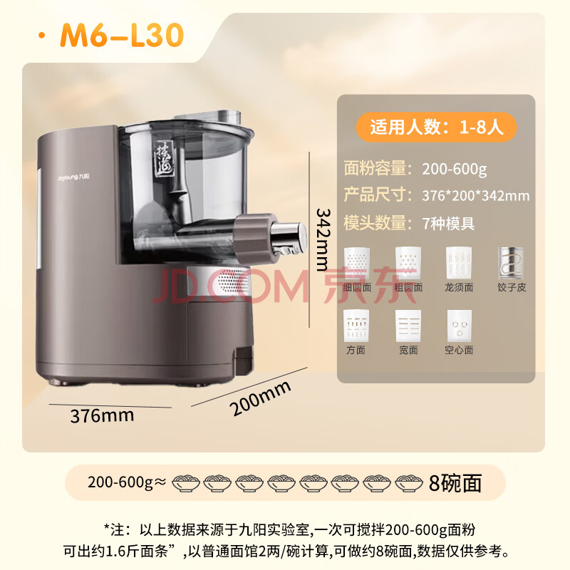 商品相册:九阳(Joyoung)面条机全自动多功能压面机 全自动加水和面机 电动饺子皮机M6-L30第