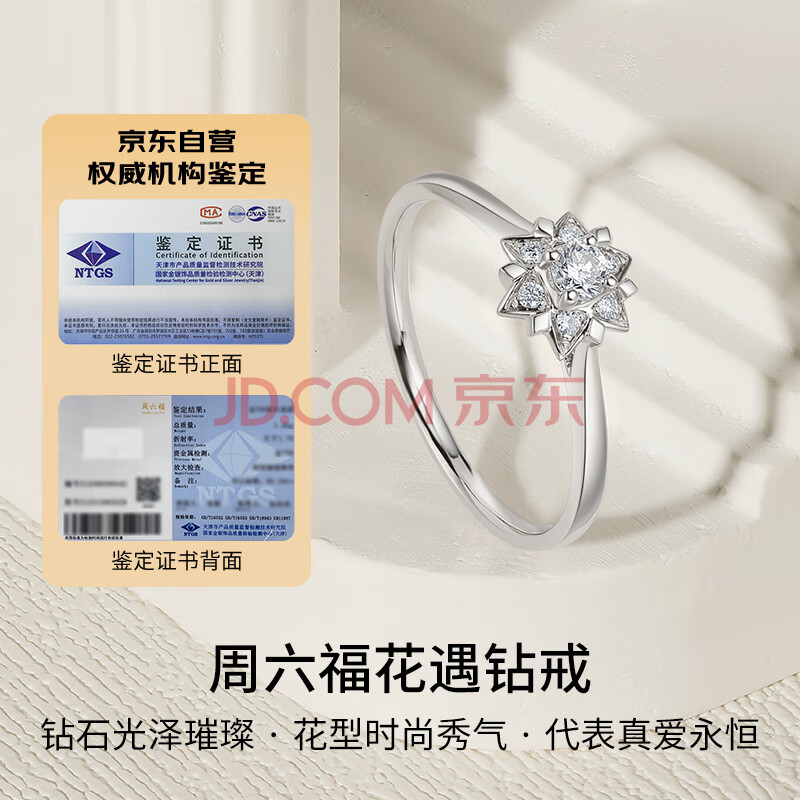 商品相册:周六福求婚钻戒18K金戒指KGDB027687生日礼物 主钻约10分 10号第