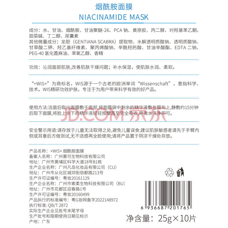 商品相册:WIS烟酰胺面膜10片提亮肤色改善暗沉温润补水保湿嫩肤极简护肤男女生第