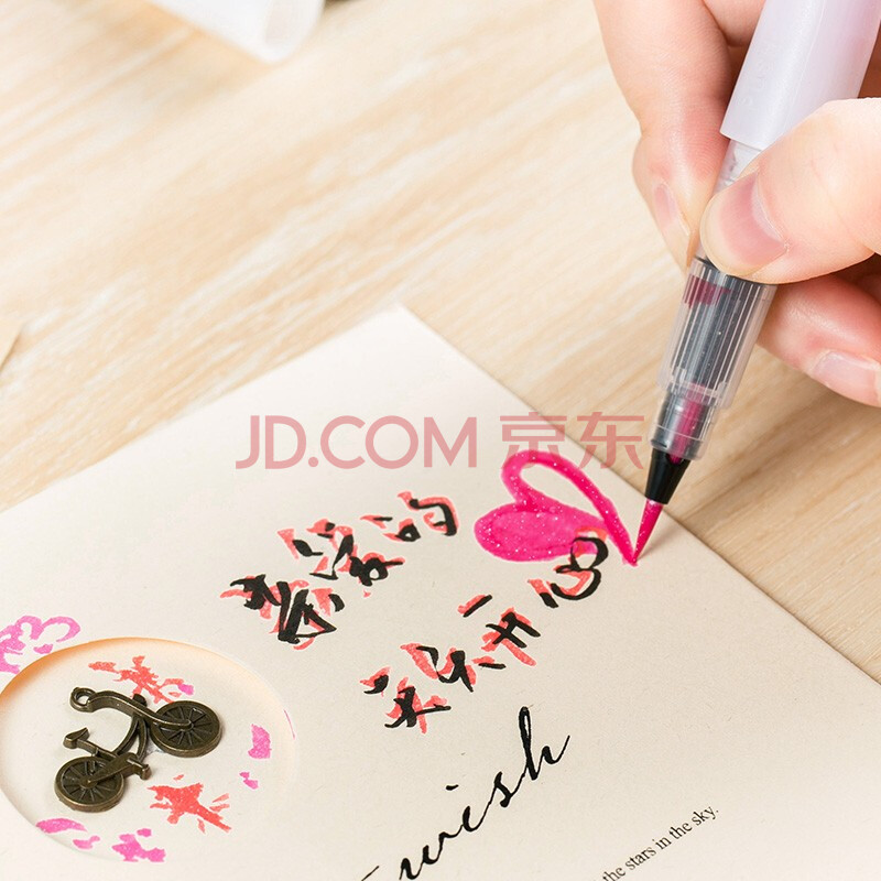 商品相册:吴竹(KURETAKE)原装进口科学毛笔自带墨水 彩色闪光毛笔 极细艳粉色DAI150-026第