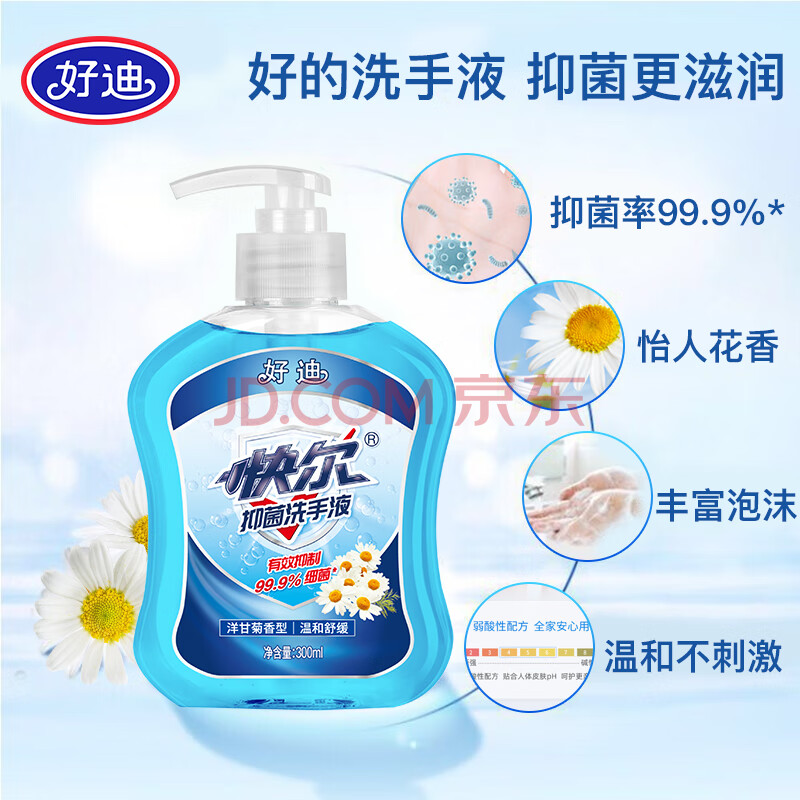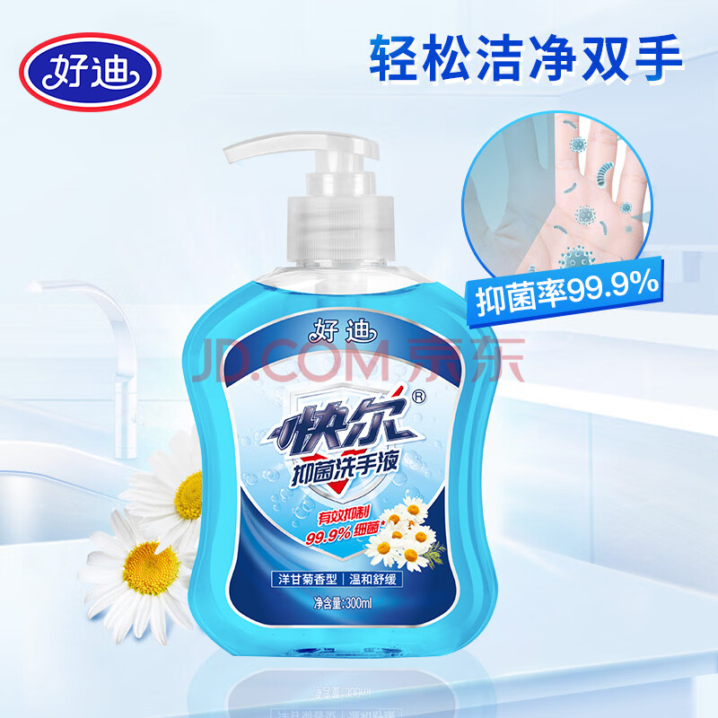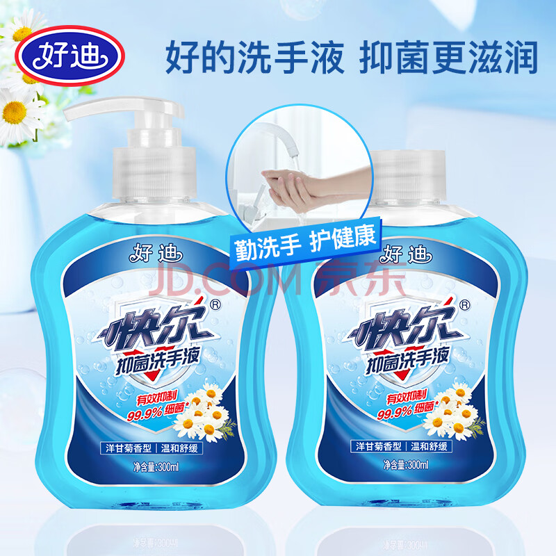 商品相册:好迪99.9%抑菌洗手液洋甘菊香型健康泡沫丰富滋润清洁洗护300ml*2瓶第