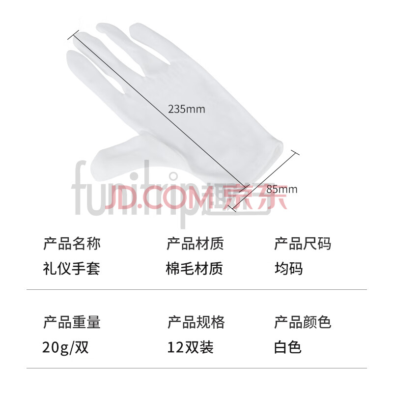 商品相册:趣行纯白棉毛礼仪手套 文玩劳保盘珠阅兵保安表演司机驾驶 12双装第