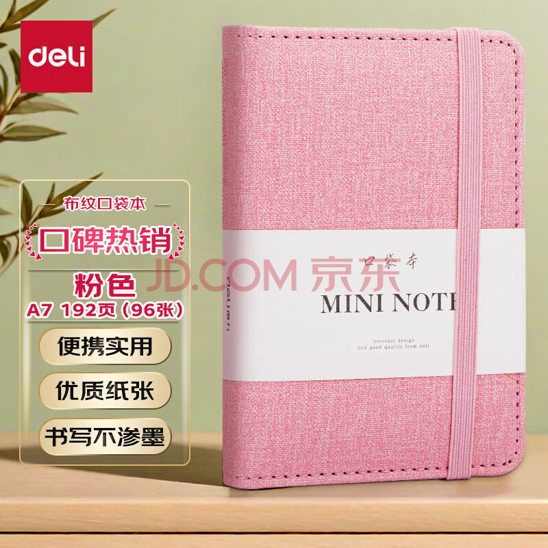 商品相册:得力(deli)(deli) A7/96张便携口袋本笔记本子 创意型迷你学生小本子记事本日记单词本 22235 浅粉第