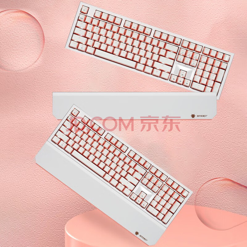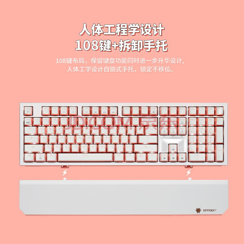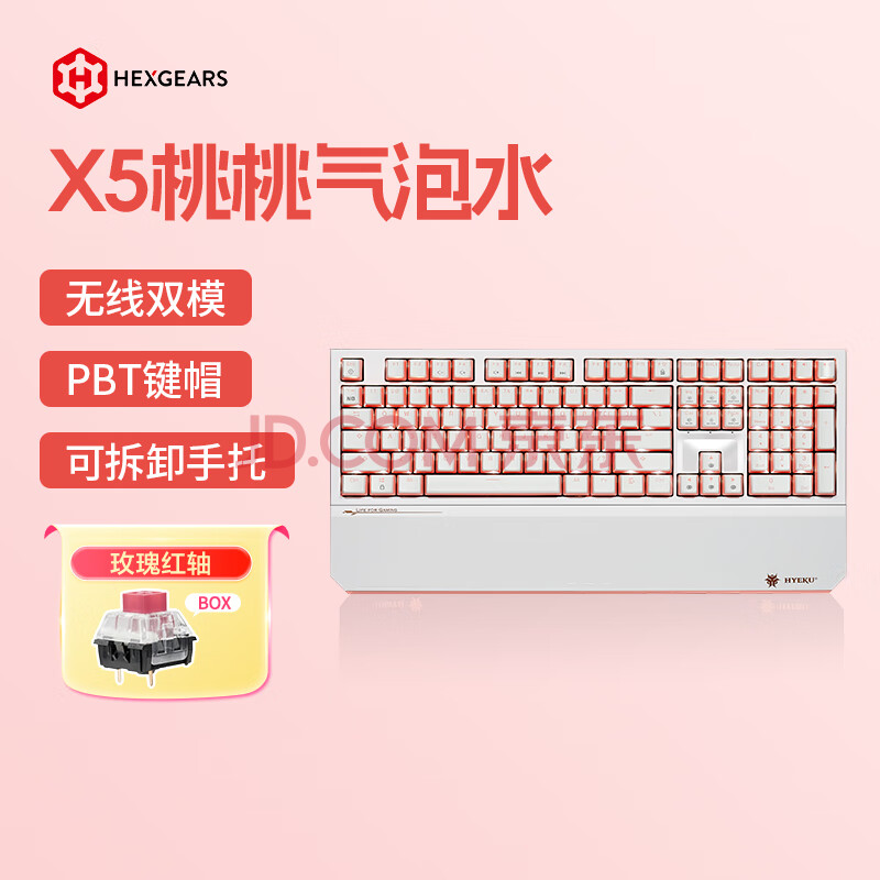 商品相册:黑峡谷(Hyeku)X5有线/无线2.4G双模机械键盘108键PBT键帽桃桃气泡水凯华BOX玫瑰红轴附卡扣腕托第