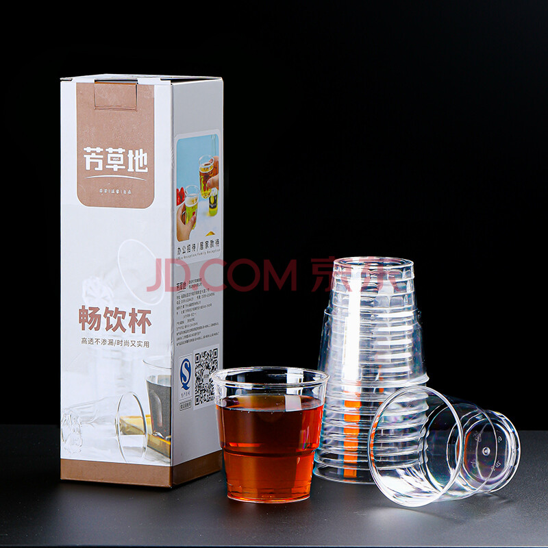 商品相册:芳草地 一次性杯子200ML*20只 透明饮水杯茶杯 加厚航空杯台阶杯啤酒杯第