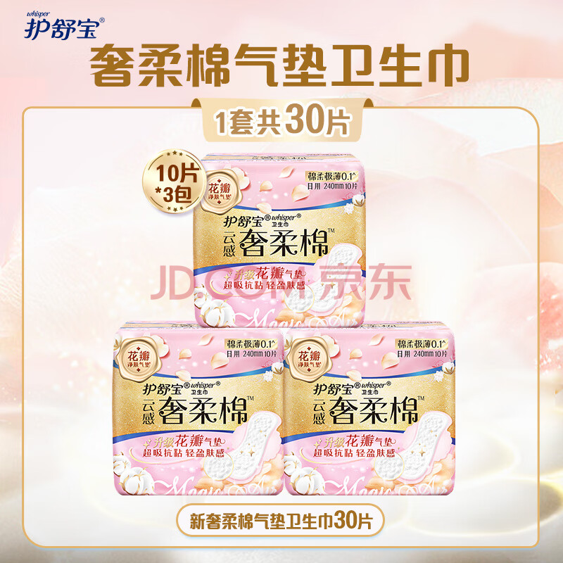 商品相册:护舒宝奢柔棉气垫卫生巾日用组合240mm30片姨妈巾干爽京东自营官方旗舰第