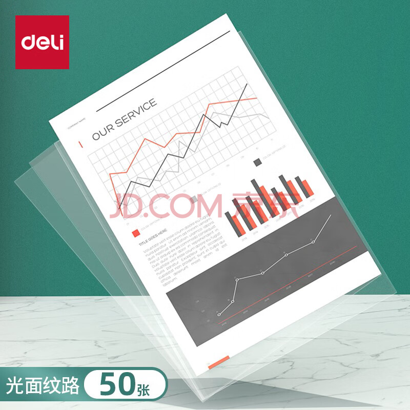 商品相册:得力(deli)50个装透明文件套 A4竖式插页保护袋奖状收集财务票据资料收纳快递袋办公文件学习用品无孔64051第