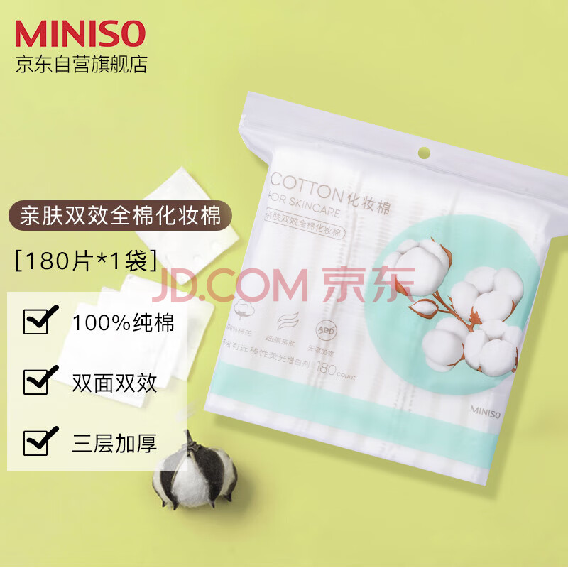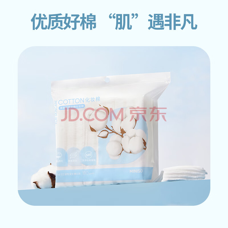 商品相册:名创优品(MINISO)(MINISO)化妆棉卸妆棉湿敷棉卸妆棉片干湿两用亲和肌肤180片*1袋第