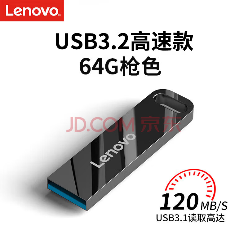 商品相册:联想(Lenovo)64GB USB3.2 U盘 SX1速芯系列枪色 金属耐用 商务办公必备第