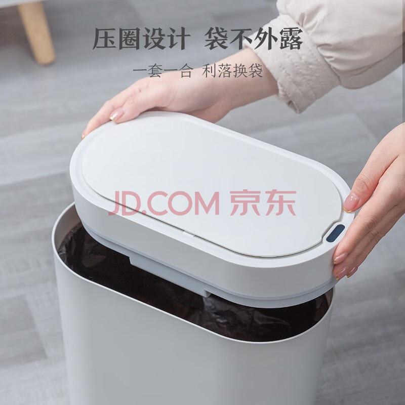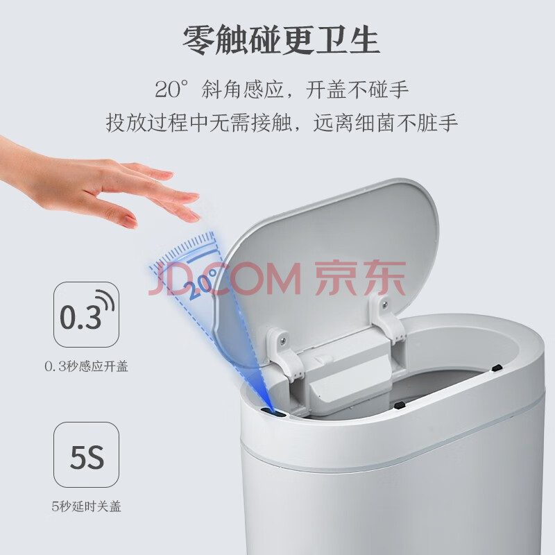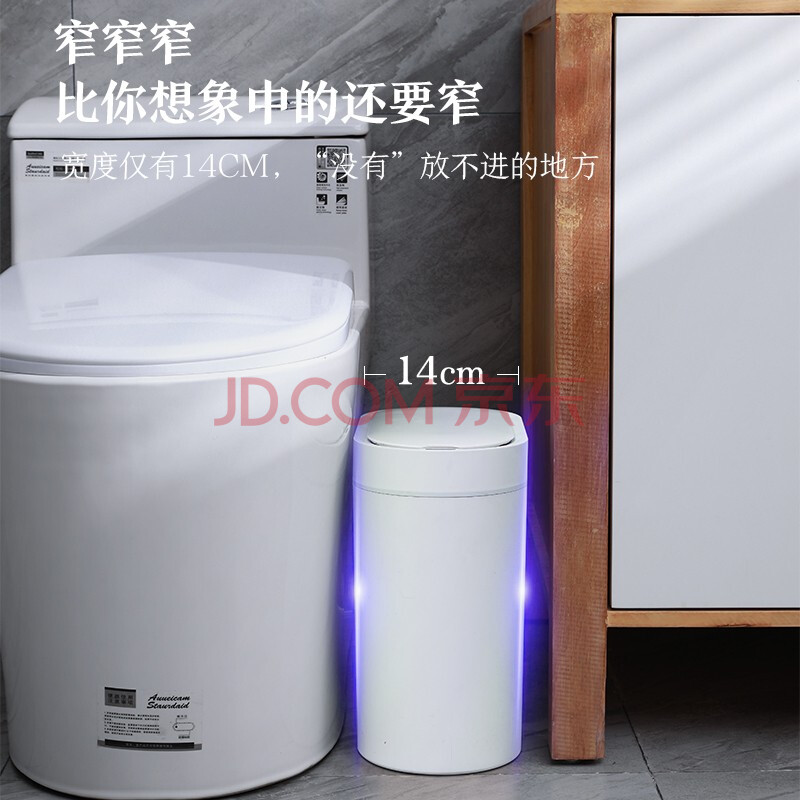 商品相册:京东京造 智能感应垃圾桶 卫生间夹缝厨房带盖垃圾筒 小号第