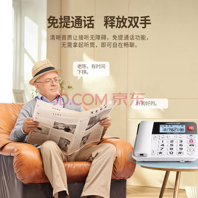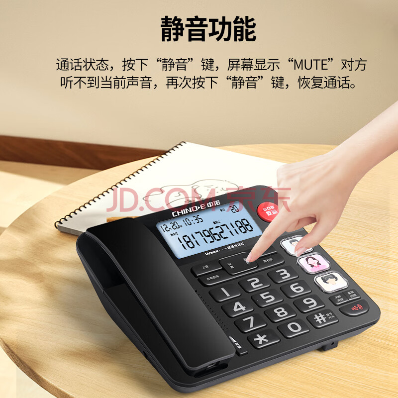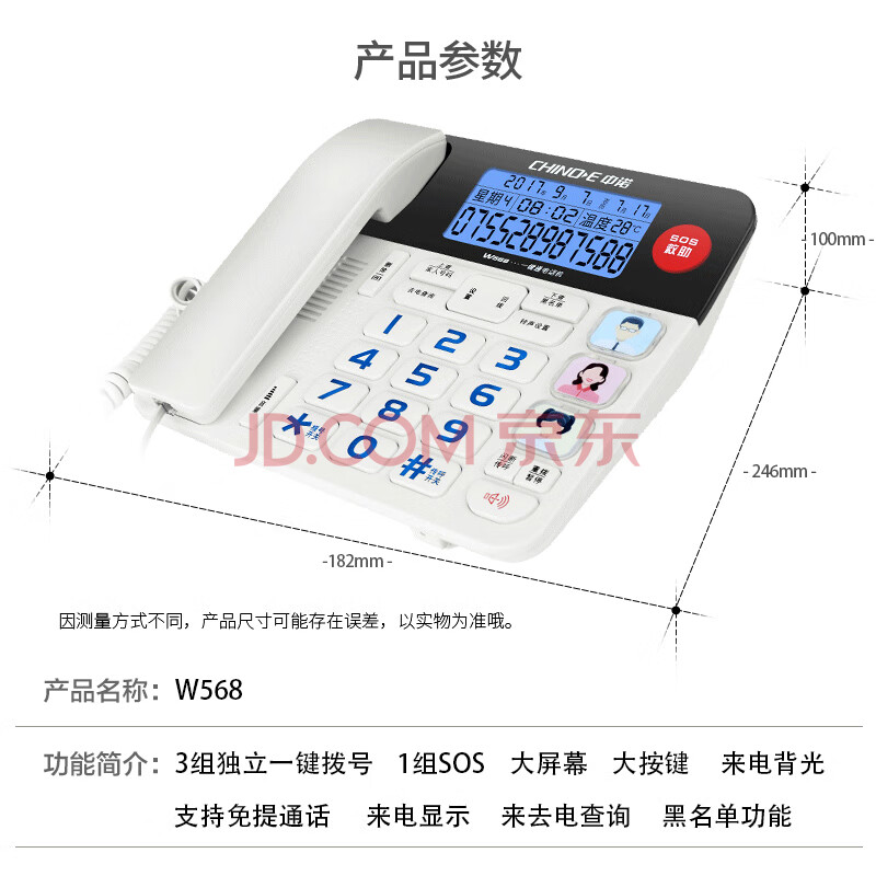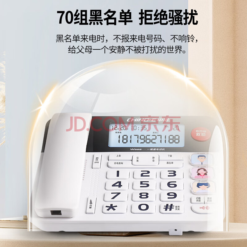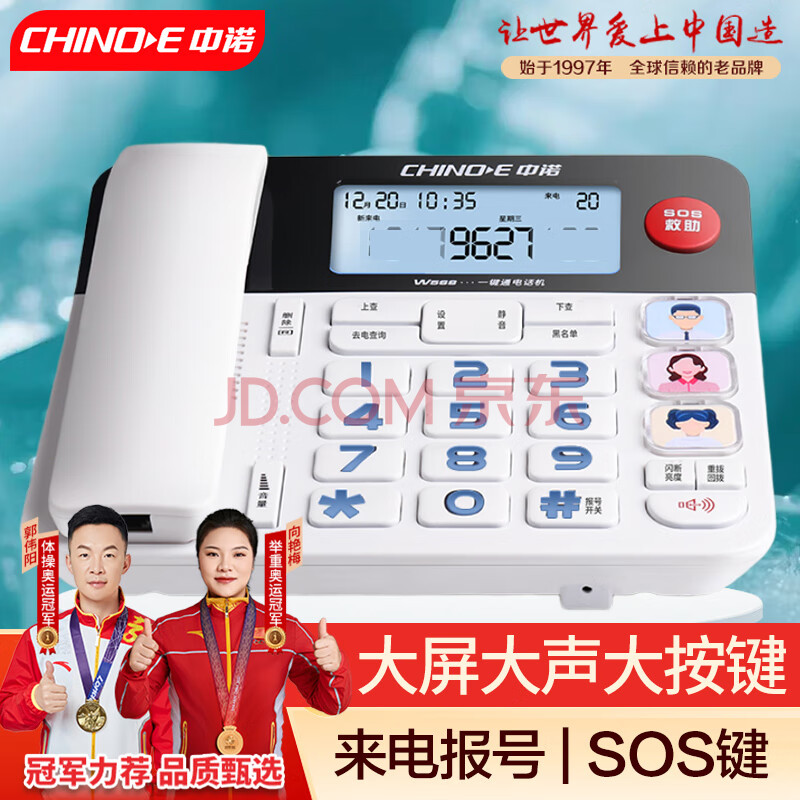 商品相册:中诺来电报号电话机座机固定电话有线绳板机老人一键SOS大屏一键拨号W568白色办公固话东自式坐第
