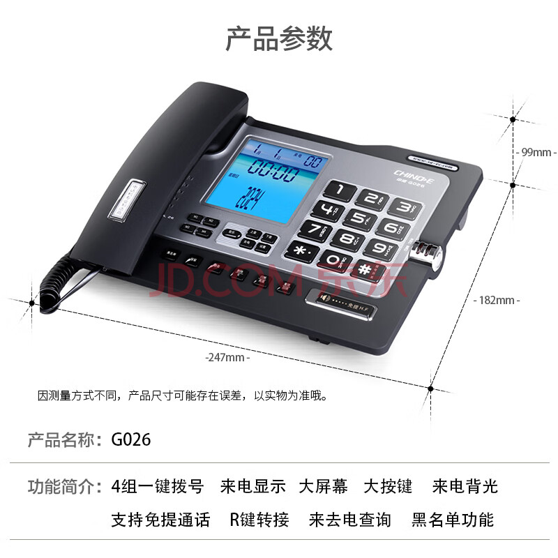 商品相册:中诺电话座机固定电话机来电显示大按键来电报号有线固话板机坐式G026黑色办公家用老人第
