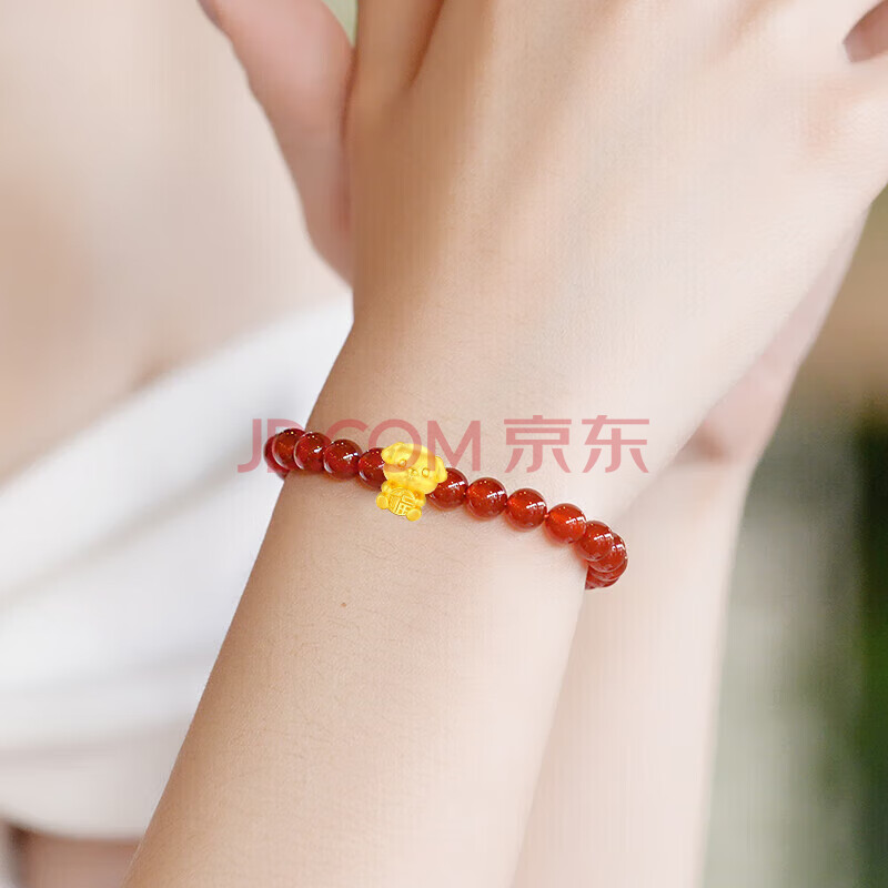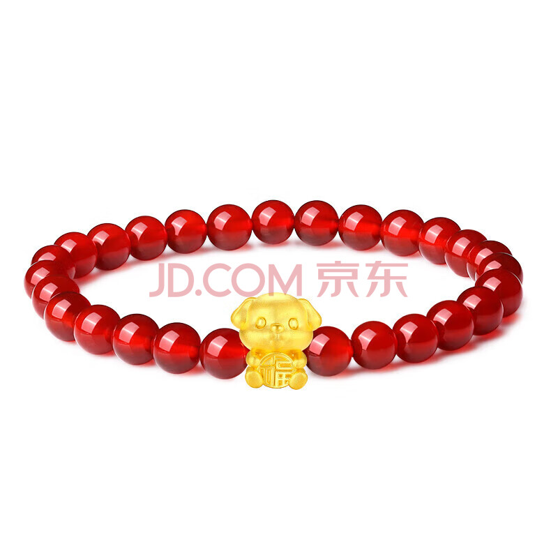 商品相册:蒂蔻(Tico)足金十二生肖狗黄金转运珠手链女款红玛瑙手串5D硬金狗本命年手链第1张/共5
