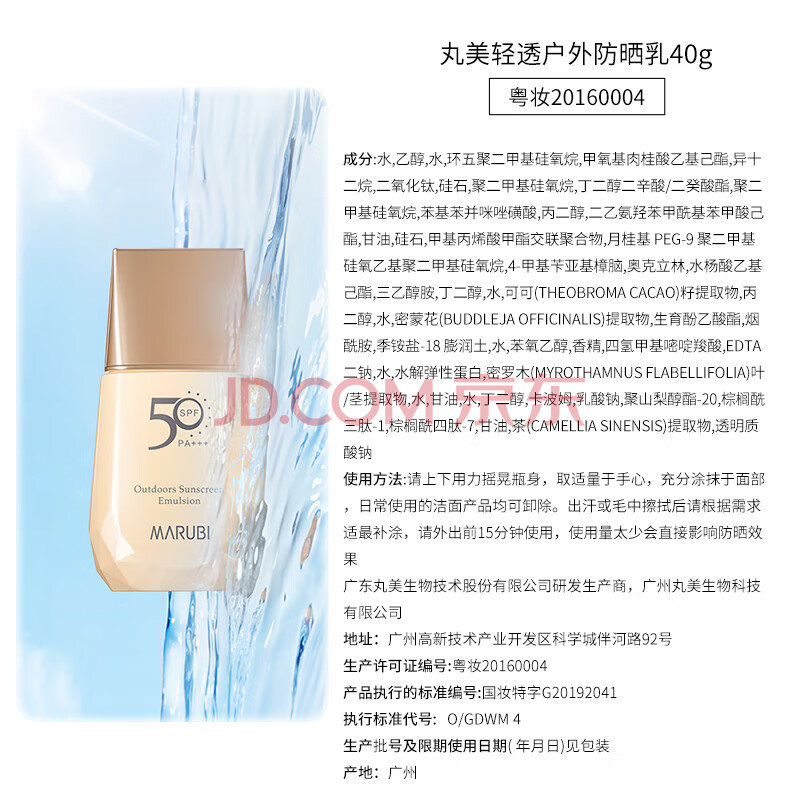 商品相册:丸美防晒霜 小金钻轻透户外防晒乳SPF50 PA+++40g 美白祛斑学生军训第