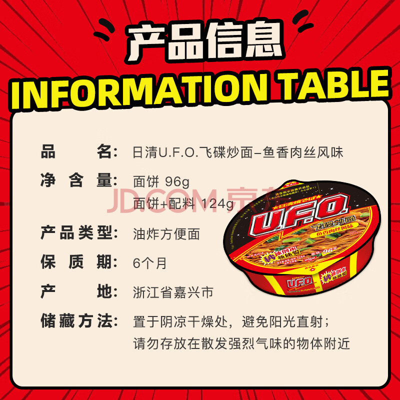 商品相册:日清方便面 UFO飞碟炒面 鱼香肉丝风味124g*12整箱装 速食面拌面泡面第