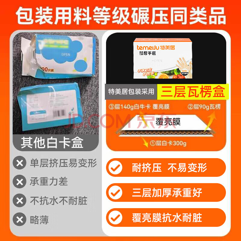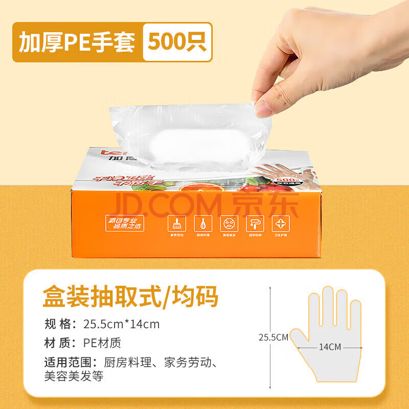 商品相册:特美居(temeiju)一次性手套食品级加厚盒装抽取式厨房PE塑料透明剥小龙虾500只装第