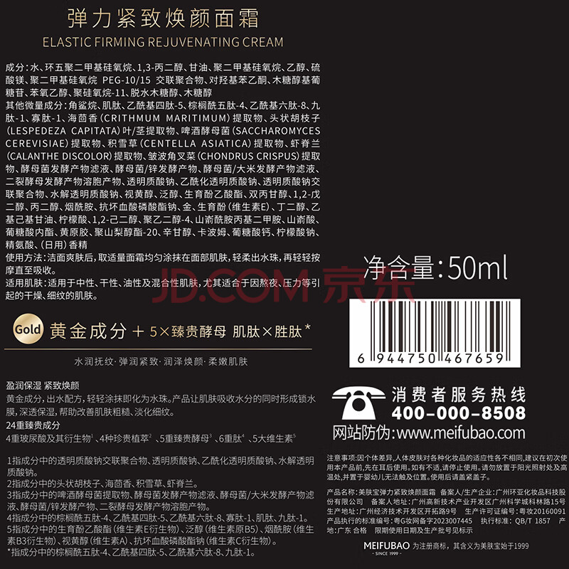 商品相册:美肤宝弹力紧致焕颜面霜50ml熬夜紧致细腻饱满嘭弹水润护肤品第