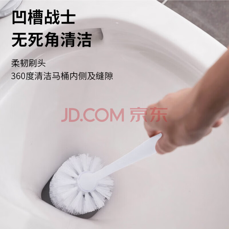 商品相册:梦庭 马桶刷套装带底座加长把手卫生间清洁刷子 白色*第