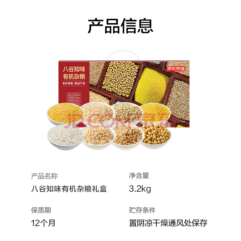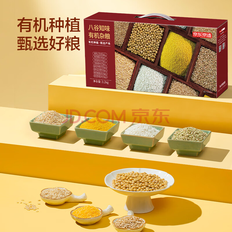 商品相册:京东京造 鲜来多八谷知味有机杂粮6.4斤8种杂粮礼盒有机当季新粮节日礼品第