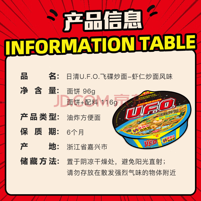 商品相册:日清 方便面 UFO飞碟炒面 虾仁炒面味面 116g*12碗整箱装节日礼盒礼品第