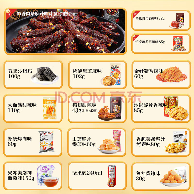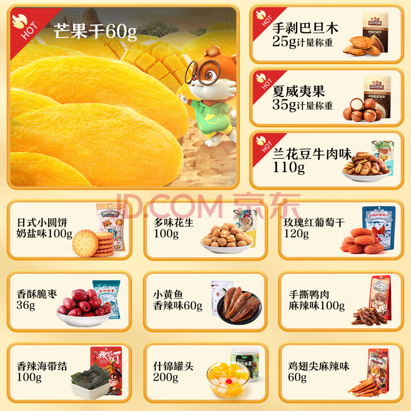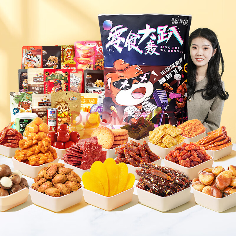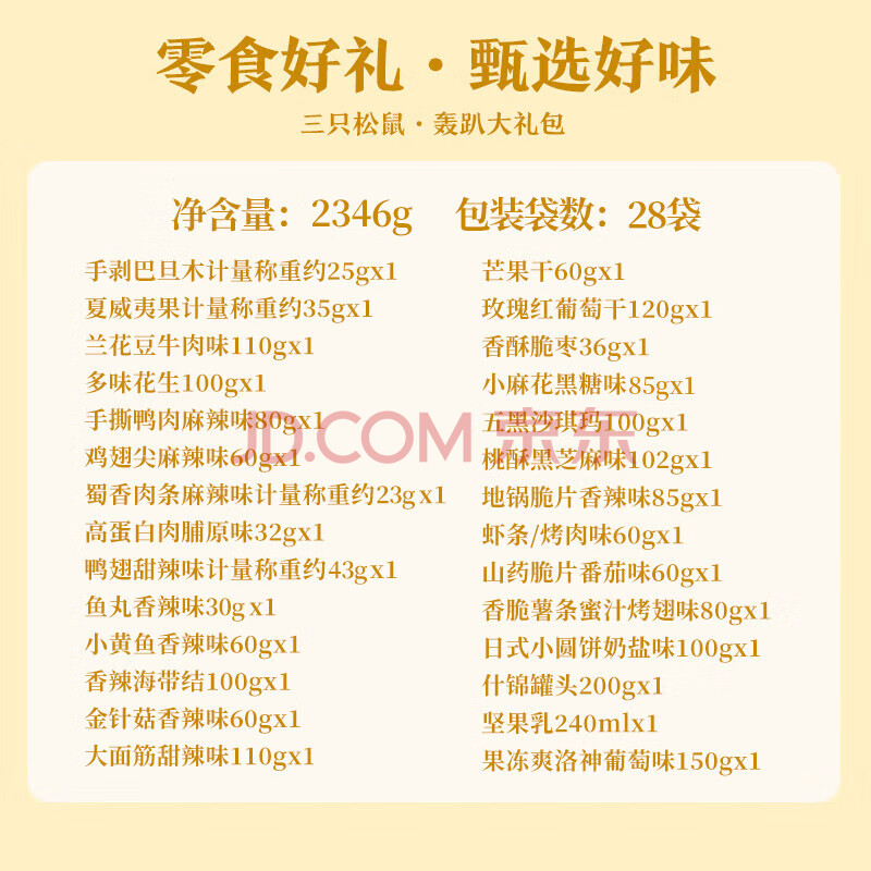 商品相册:三只松鼠轰趴零食大礼包28袋2346g 辣条肉脯儿童休闲零食年货礼包送礼混发第