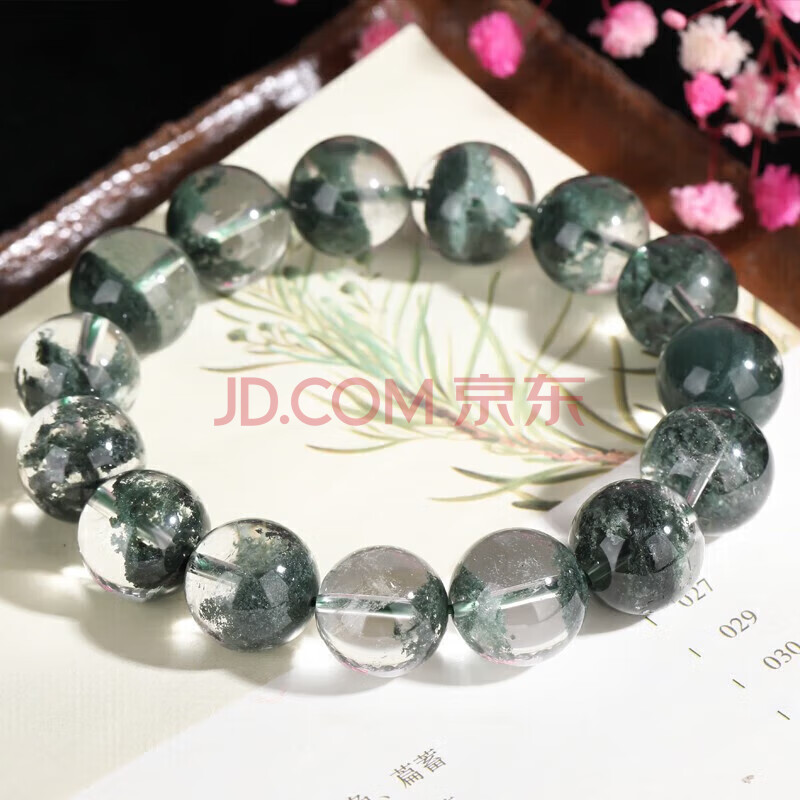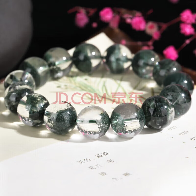 商品相册:石玥珠宝精品13-14mm天然绿幽灵手串本命年转运珠手链男女士款 水晶玛瑙第