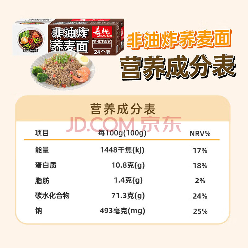 商品相册:寿桃非油炸荞麦面条低脂方便面挂面早餐汤面粗粮面饼蛋面1750g整箱第