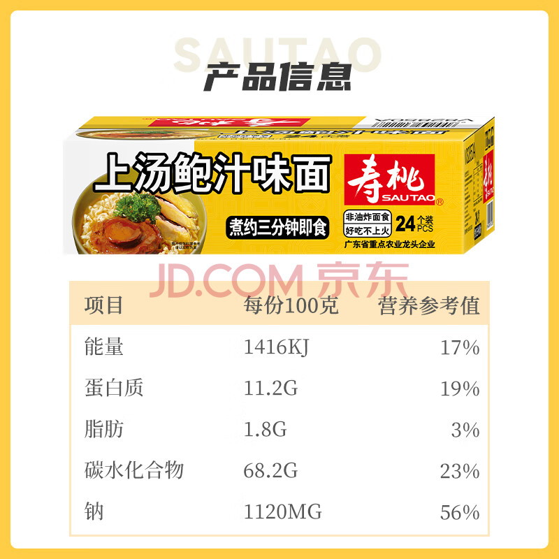 商品相册:寿桃上汤鲍汁味汤面条方便面挂面非油炸鸡蛋面早餐汤面速食1750g/箱第