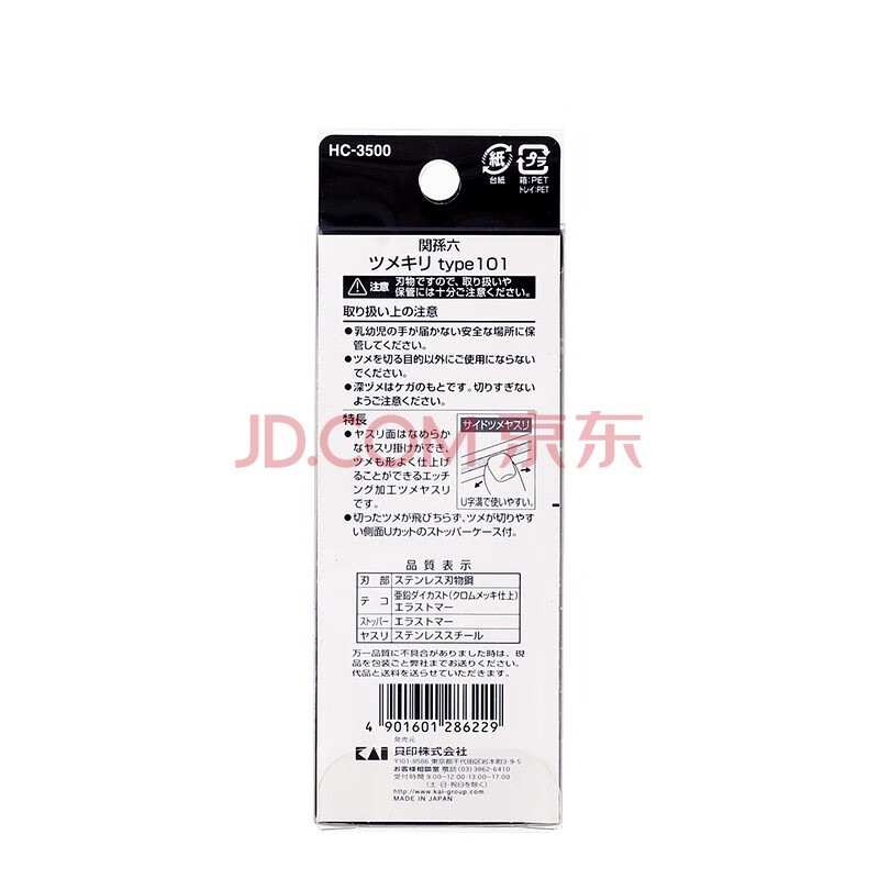 商品相册:貝印(KAI)日本进口关孙六全钢指甲钳/指甲刀剪(防飞溅)HC-3500第