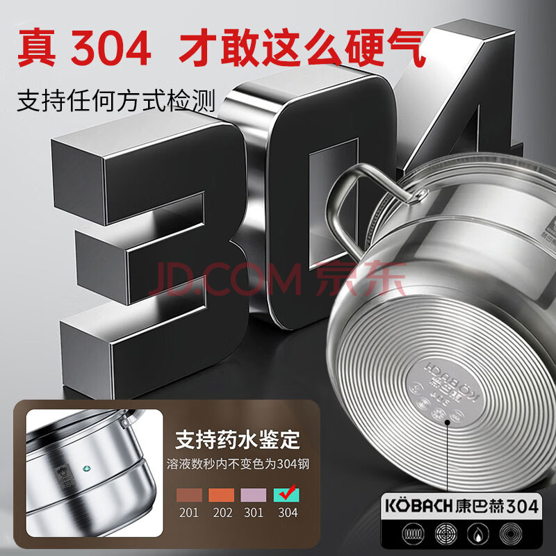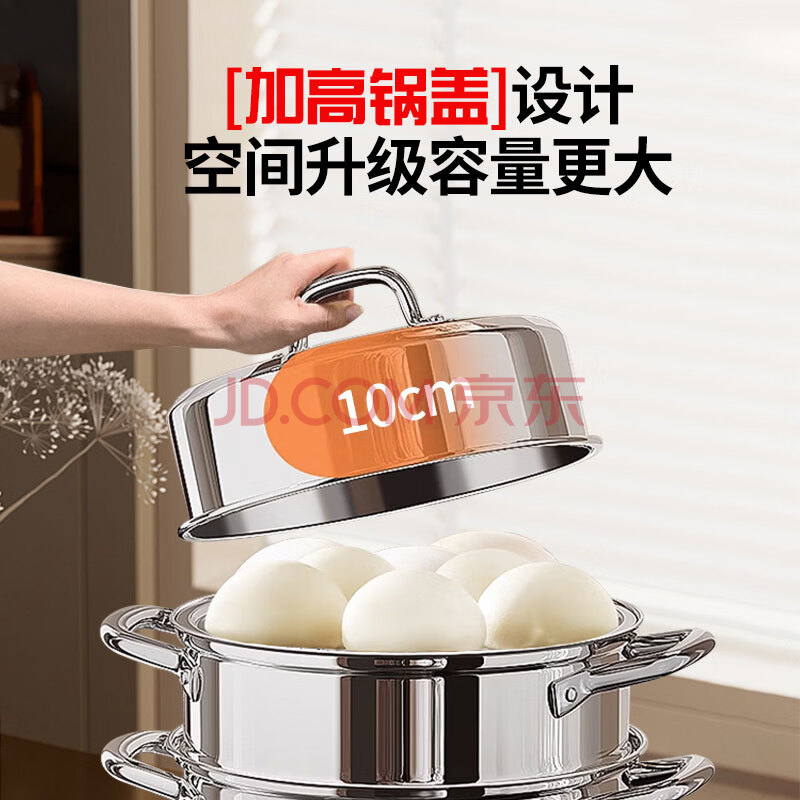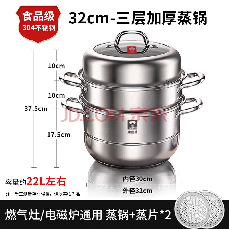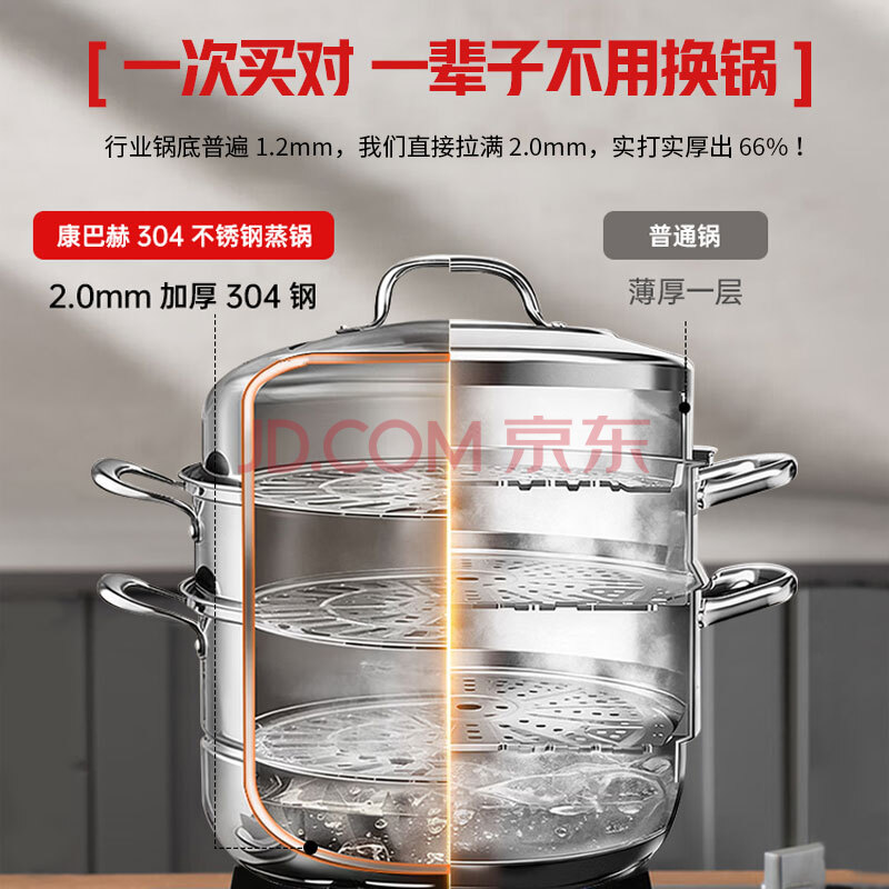 商品相册:康巴赫304不锈钢三层蒸锅蒸笼复底大汤蒸锅多功能锅具32cm燃气灶通用第