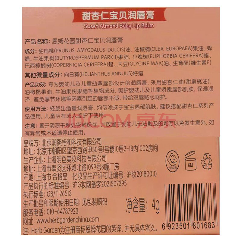 商品相册:恩姆花园宝宝润唇膏儿童护唇膏4g保湿滋润防干裂脱皮 新生儿可用第